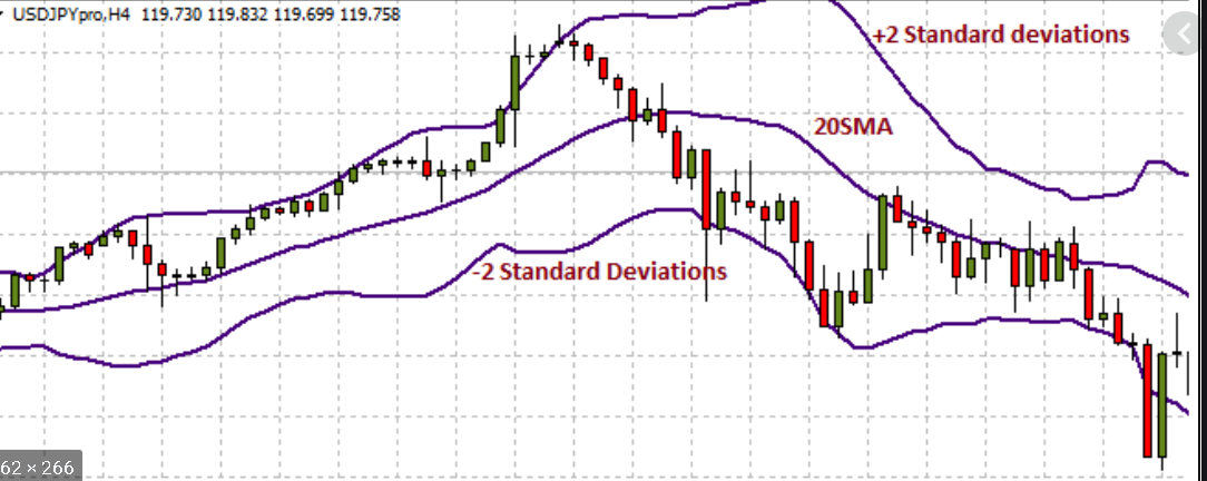 当价格上穿过布林带上边界,可以视为当前价格上涨很快的信号,反之,当价格下穿过布林带下边界,则可以视为当前价格下跌很快的信号,因为价格在布林带内,可以视为正常波动,而一旦突破布林带,即价格超越了正常波动的区间,也就是很可能价格变动从无序变成了有序,分析师们可以结合其他信号判断是否一波趋势形成,或者是超买超卖。