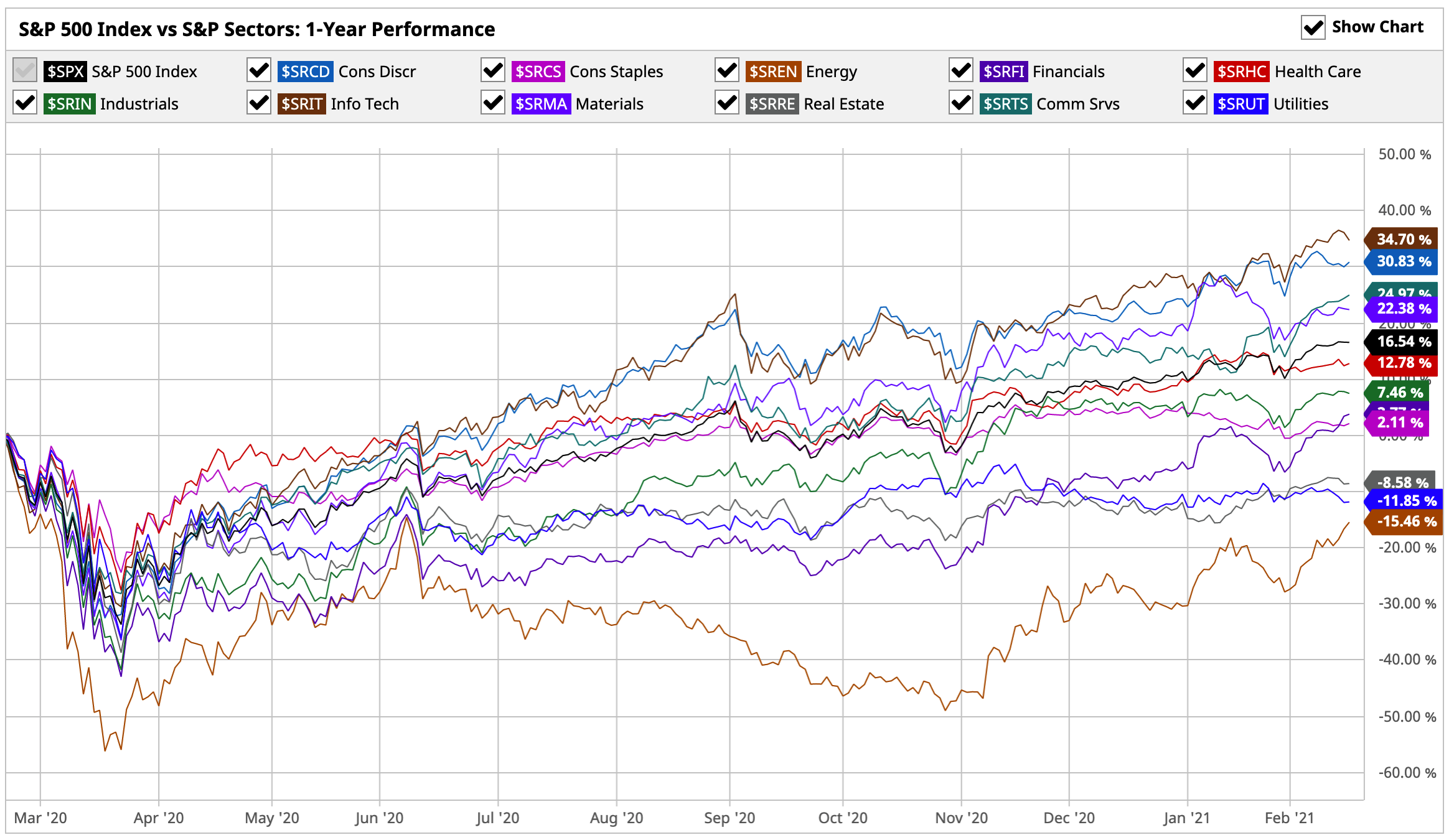标普11个子行业的对比情况 https://www.barchart.com/stocks/market-performance