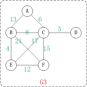 - E1={(A,B),(A,C),(B,C),(B,E),(B,F),(C,F), (C,D),(E,F),(C,E)}。 E1是由边(A,B),边(A,C)…等等组成的集合。其中,(A,C)表示由顶点A和顶点C连接成的边。