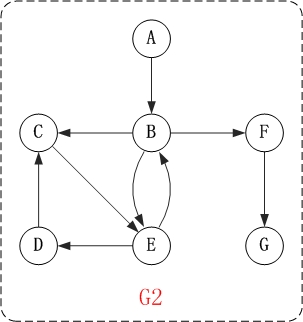 - A2={<A,B>,<B,C>,<B,F>,<B,E>,<C,E>,<E,D>,<D,C>,<E,B>,<F,G>}。 E1是由矢量<A,B>,矢量<B,C>…等等组成的集合。其中,矢量<A,B)表示由”顶点A”指向”顶点C”的有向边。