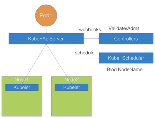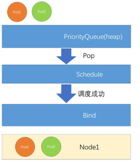 - 调度成功后,对Pod1进行Bind,开始下一轮调度Pod2