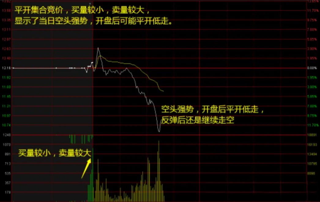 (3)进量较小,出量较大,显示了当日空头强势,开盘后可能平开低走。
