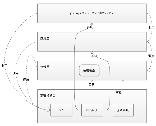“领域层”的“领域服务”会依赖“仓储接口”,“仓储接口”也会依赖“聚合根”,这两者都是除了“实现依赖”之外的依赖关系,如果将“接口”放到“仓储实现”中就丧失了面向接口编程的意义(编译也不会通过),如果放到“独立层”中呢?会编译不通过,出现双向依赖了。