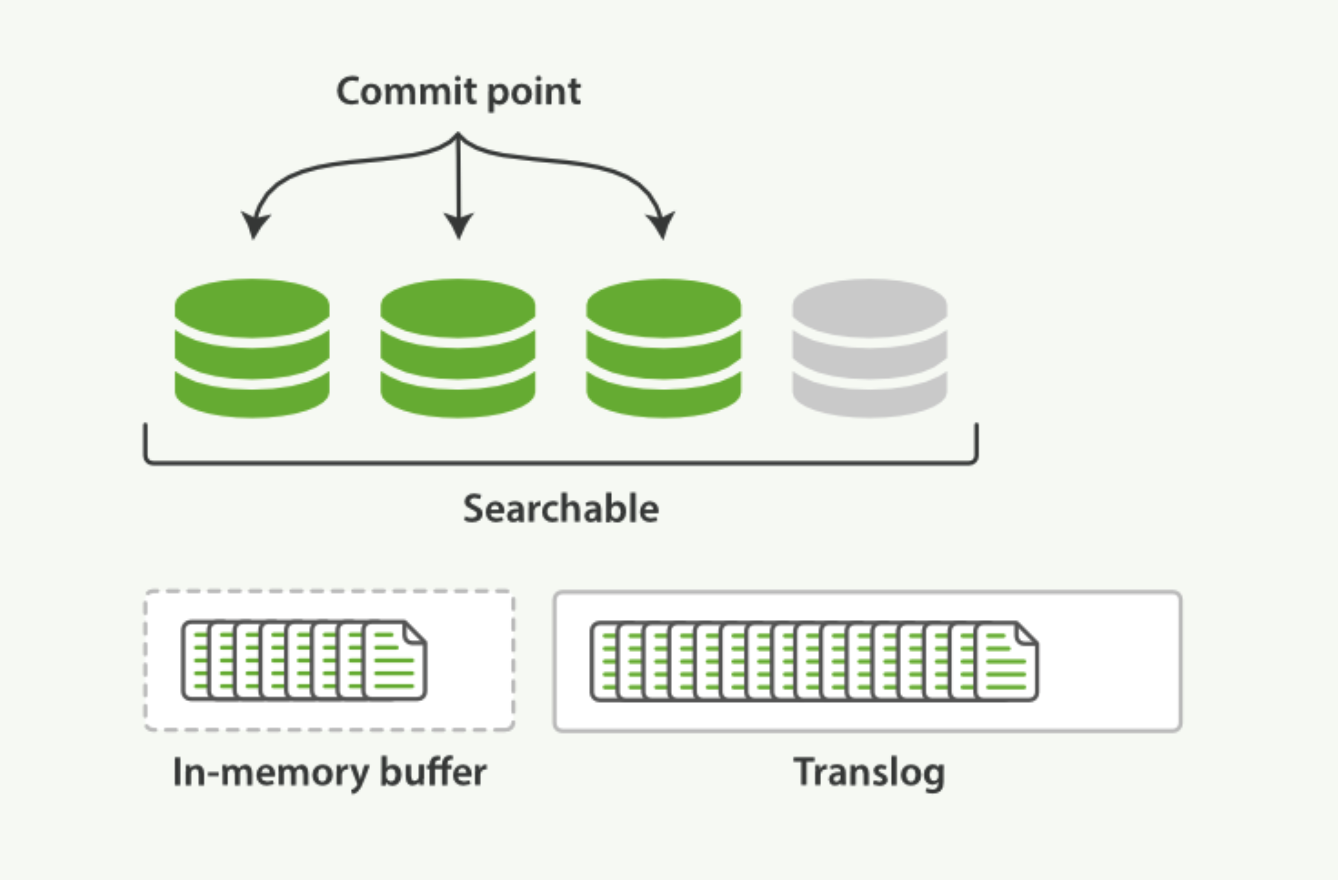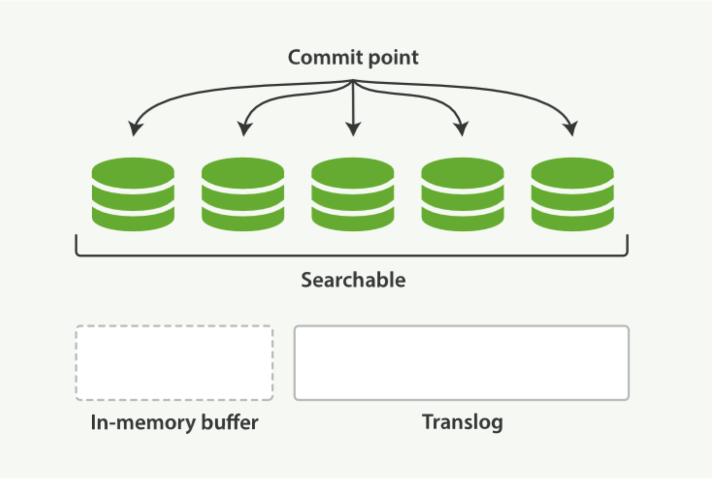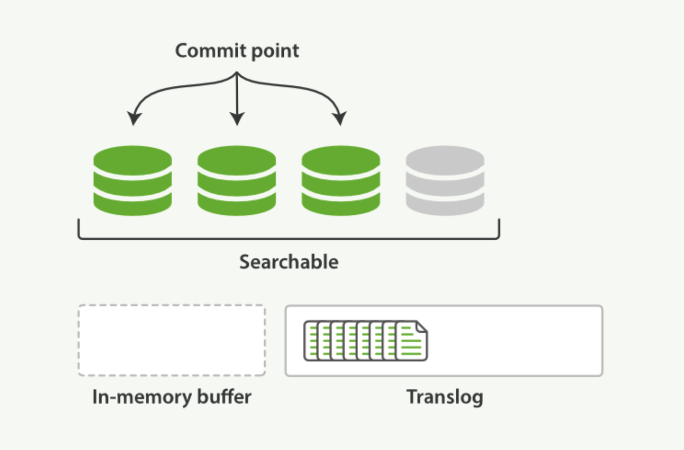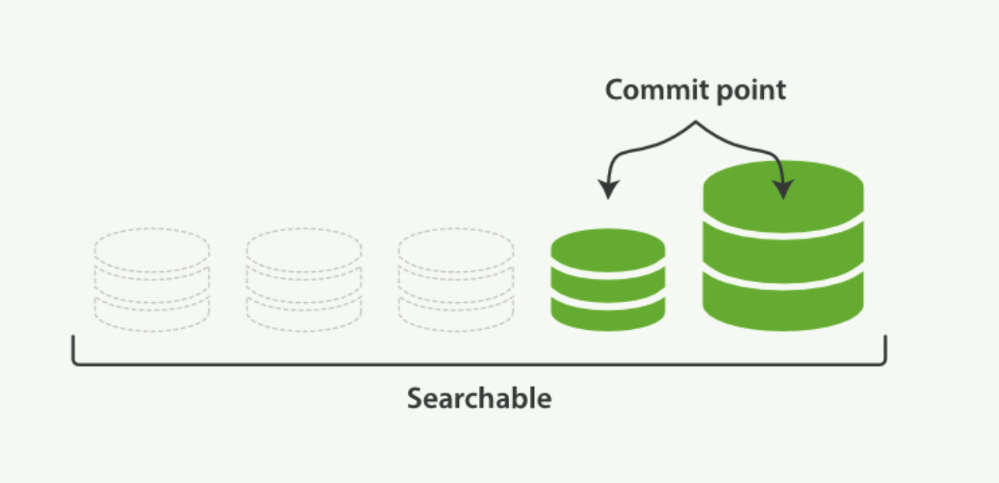 如图,文档被写入一个新的段后处于searchable状态,但是仍是未提交状态