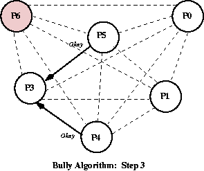 - 只有P5回应回应Answer(Alive)消息,告诉P4,P5还存活着