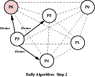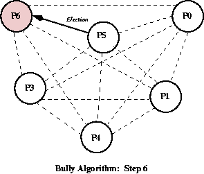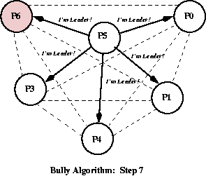 - 当P6没有响应,P5发送Coordinator(Victory)消息,宣布自己是新的leader