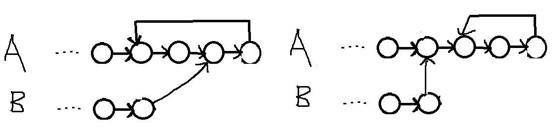 2. 两条链表都带环。如果两条链表相交,则他们共享同一个环!
