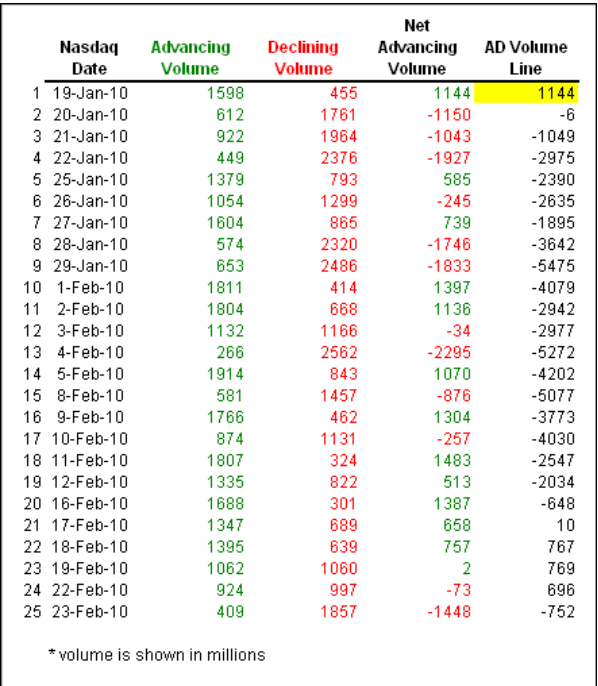 接下来就和AD线完全一样,算出每天的ADV值 第1天的ADV值=净值 第N+1天的ADV值=第N天的ADV值+净值