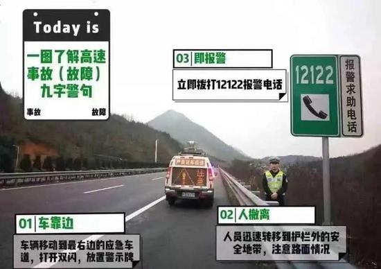 3。即报警:撤离后,请拨打高速报警电话12122,告知事故简要情况和准确位置。