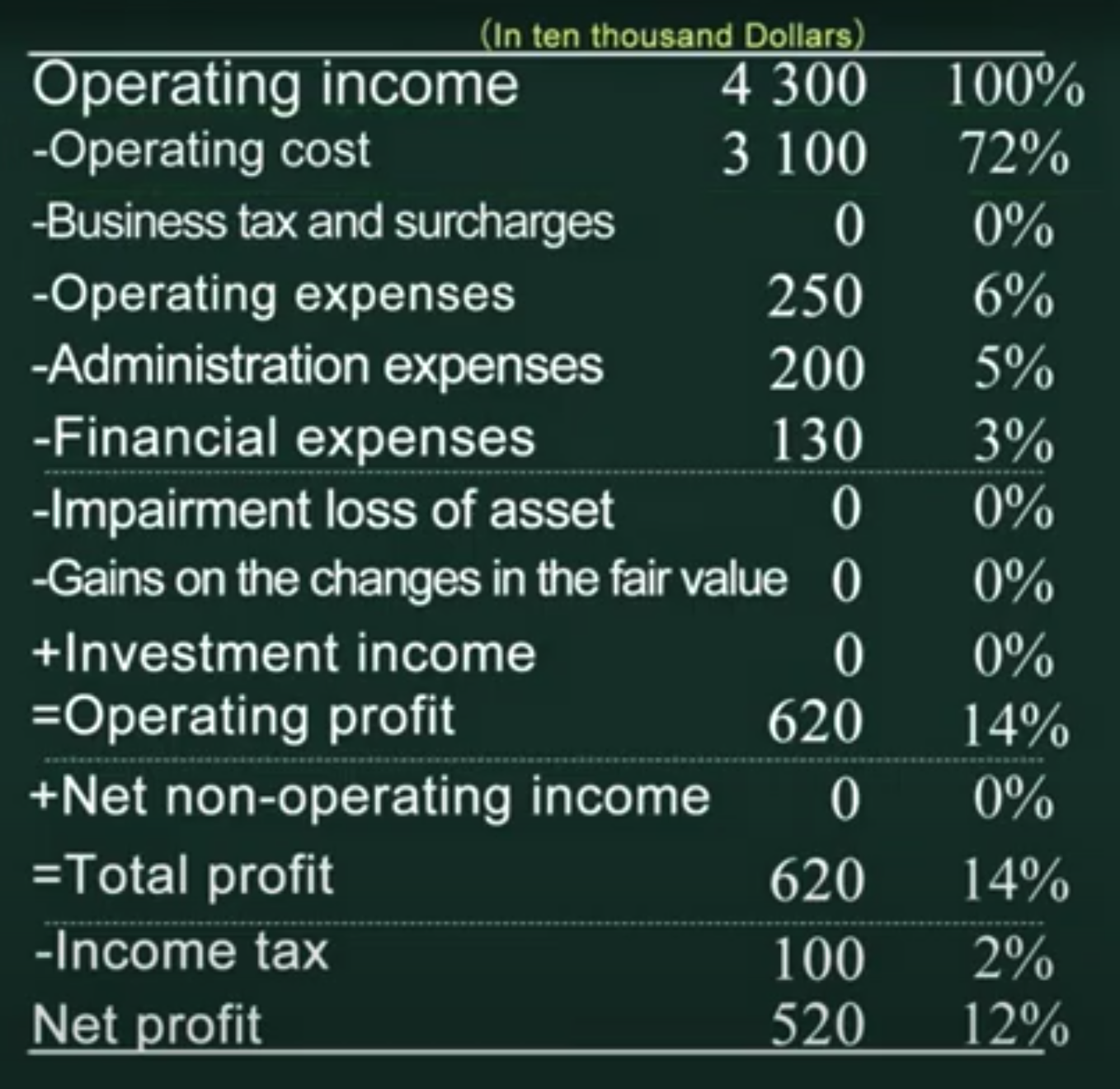 • 利润总额=营业利润+营业外收入-营业外支出+补贴收入-汇兑损益=净利润