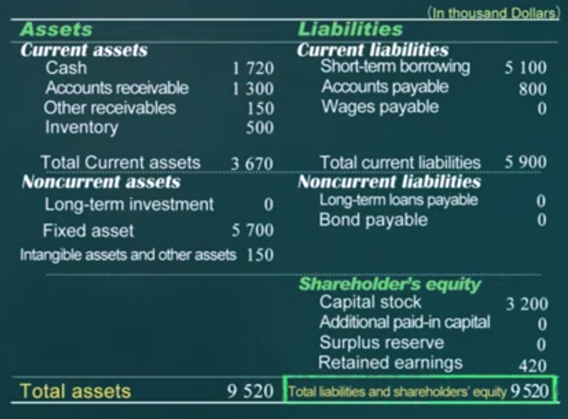 • 流动负债:短期借款、应付账款、其他应付款(借朋友的钱、欠员工的工资即应付工资、应交税金比如增值税)、预收账款、其他