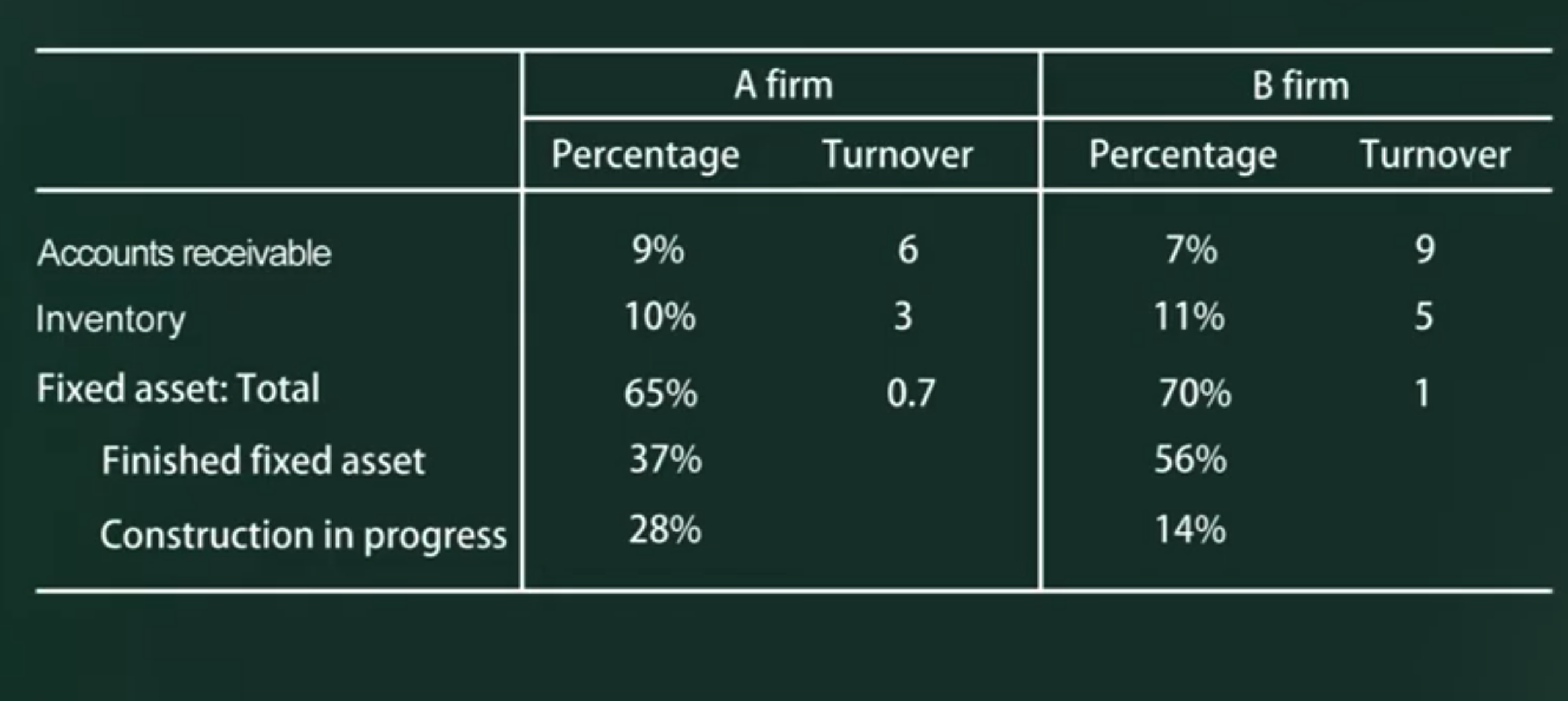 想要知道A的总资产周转率为什么低于B,得了解公司的什么样资产最多、这些资金是怎么周转的、周转率怎样