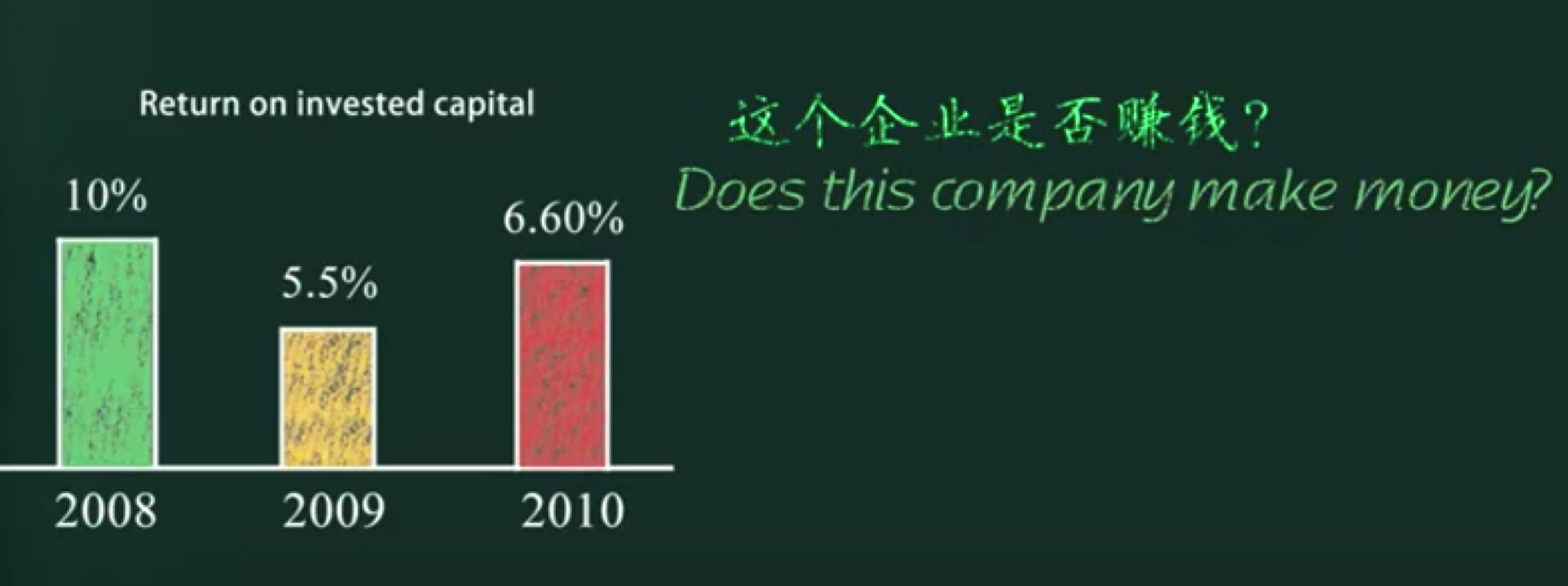 好企业是一家赚钱的企业,所以什么是赚钱? 赚钱不是有利润,不是有收入,不是有增长率,甚至不是有利润率。从短期来说赚钱是有正的经济利润,从长期来说赚钱是为股东创造价值。这是好企业的最低要求!