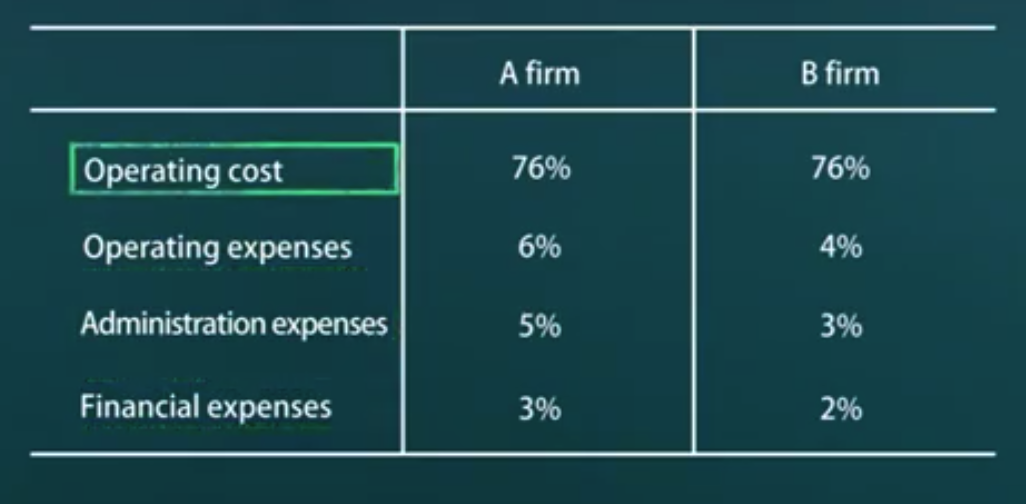 A,在效率和效益方面都低于B 效益查的原因 成本、费用 成本相同,但是A的规模很大,没有发挥规模经济性的优势,成本上是存在问题的, 三项费用A>B image.png