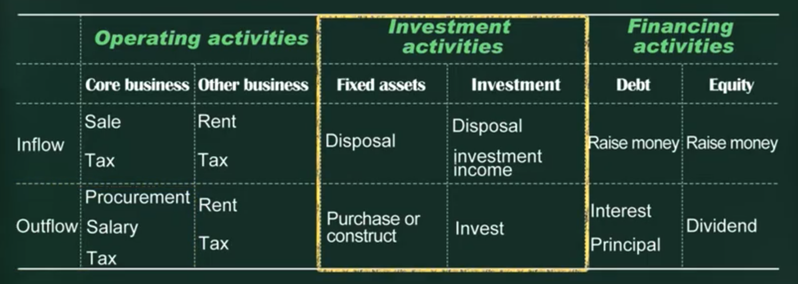 现金流量表,不关心资产活动是否和未来相关, 资产负债表和利润表,根据资产活动是否和未来相关分别记在资产负债表和利润表