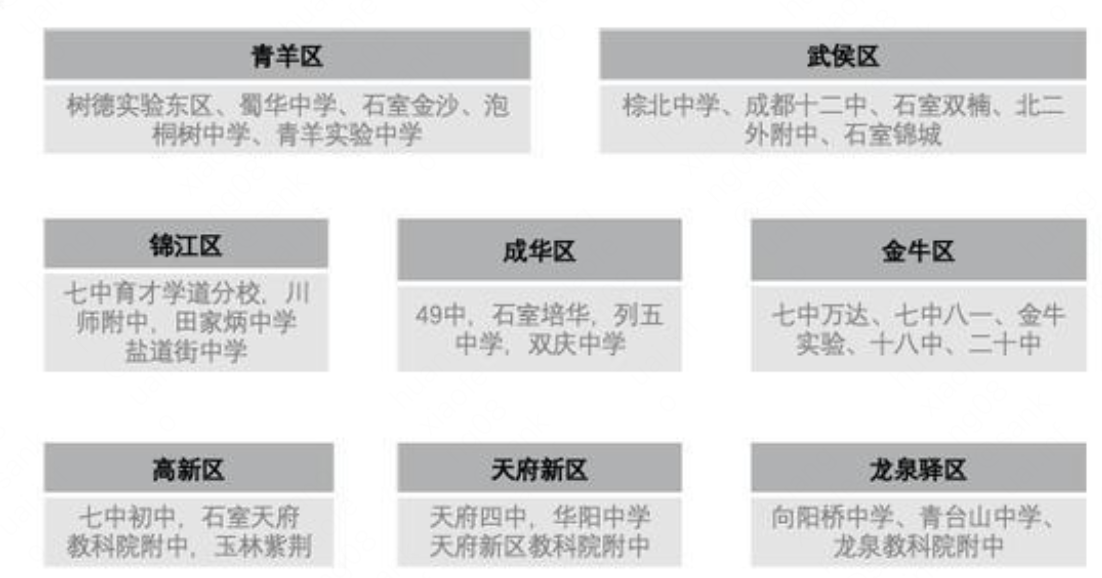 最后就是一些老牌的民办学校了,比如北师大成都实验、七中实验、树德博瑞、新都一中实验学校、棠外、双中实验等,这些学校虽然现阶段不能跟刚才提到的学校相比,但仍然可以作为部分中等学生和外地生的首选学校。